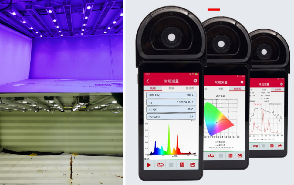 图1为配备有不同颜色单色光的货架和光强测定仪,精准控制康兆强度大小