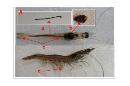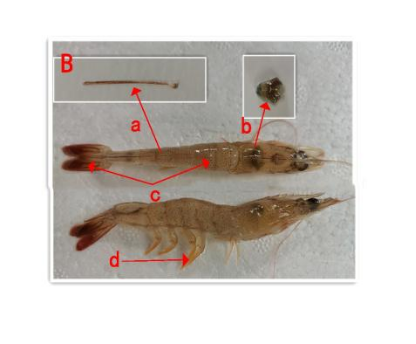 图1 正常南美白对虾 图2 副溶血弧菌感染后的南美白对虾 图3 药物添加的南美白对虾