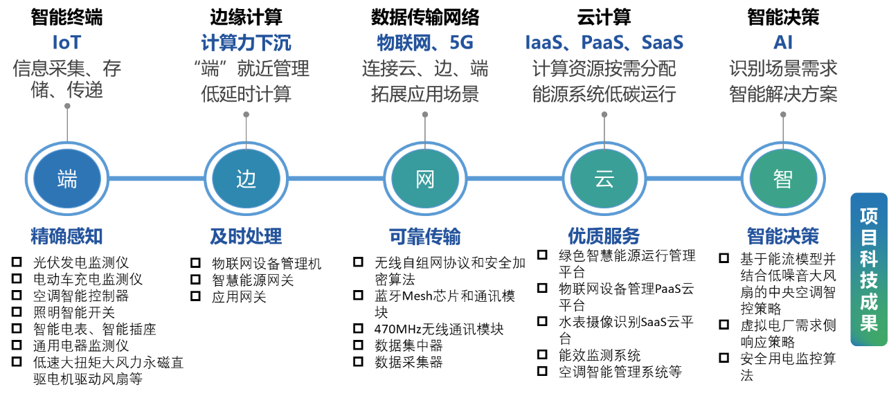 项目在国家自然科学基金等项目支持下,研制了一套系统平台和两套系列化装备,解决了电机能效、中央空调节能、建筑无线物联网、电力需求侧响应等难题。项目将物联网、大数据、人工智能等新型数字技术与通信模组用于建筑低碳运行管理,打通了能源系统内硬件设备与上层应用间的信息孤岛,通过采集和整合建筑内电、热、冷、气、水等能源数据,以及物资利用数据,对建筑用能、资源利用数据进行统一分析比较和规划,可以实现建筑管理效率与节能率的大幅度提升,并减少和避免建筑物资浪费,在实现能源系统绿色高效运行和建筑碳中和方面取得重大社会效益。