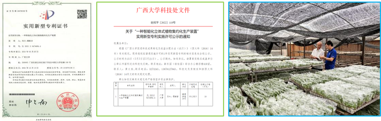 完成装备研制和进入小试阶段。已在香蕉组培苗生根繁育中许可实施应用。