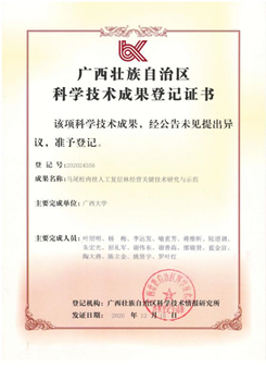 广西人工用材林及经济林面积居全国第一,其中马尾松是我区主要用材树种,肉桂是名特优经济林树种。但长期以来,受传统经森林经营思想及先进经营技术的制约,人工用材林及名特优经济林的培育多采用单纯林培育模式,导致林分结构单一,森林稳定性差,林地质量衰退,生产力及物多样性下降,经营效益低下,严重制约了人工林高效可持续经营。针对人工单纯林经营存在的突出问题,原广西壮族自治区林业厅立项开展《马尾松肉桂人工复层林经营关键技术研究与示范》研究(桂林科字[2014]),项目研究成果提出人工复层林经营的基本理论,系统组装人工复层混交林树种选配技术、光环境调控技术、密度控制技术、地力维持技术、环境友好型林地清理与整地技术、水土流失防控技术、测土配方施肥技术、生态采伐技术等关键技术体系。