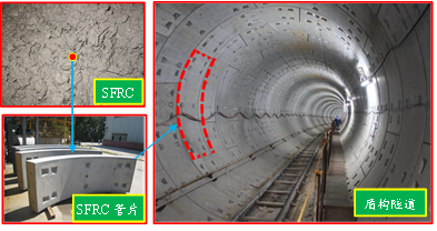 钢纤维混凝土(英文为Steel fiber reinforced concrete,简称SFRC)预制衬砌作为一种新型的隧道衬砌,通过在普通混凝土中掺入乱向分布的钢纤维,可有效改善结构内部受力,极大增强抗拉、抗弯和抗裂等性能,可以很好解决普通钢筋混凝土衬砌易裂损等问题,同时还可减少钢筋用量及其相关工艺,大大提高效率和降低碳排放量等。