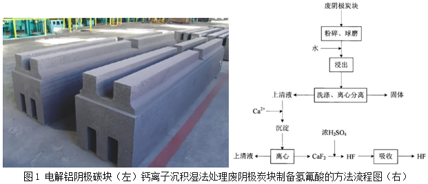 我国是电解铝第一生产大国,其电解铝产量和产能均超过全球电解铝产量和产能的一半。电解铝企业在生产中使用的阴极炭块,会因渗入大量的电解质造成阴极炭块破裂而无法继续使用,是电解铝生产过程中产生的主要固体废弃物之一。但由于废阴极炭块是一种富含高度石墨化碳和含氟电解质的有价资源是一种人造的矿物资源。因此,如何彻底解除铝电解废阴极炭块中氟化物和氰化物的危害,实现铝电解废阴极炭块的无害化和资源化回收利用是亟需攻克的行业难关。从已有的技术成果来看,对铝电解槽废阴极炭块的无害化、资源化处理利用分为水溶液的湿法处理和高温处理两大类,两种方法仍然存在二次污染和工艺控制难度大等一系列问题。