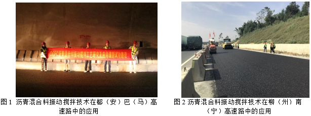 沥青混合料振动搅拌生产技术首次运用在广西柳(州)南(宁)高速改扩建工程项目,该技术有效提高了沥青路面高温稳定性、水稳定性、疲劳抗开裂性能,显著提高了高速公路的耐久性。沥青混合料振动搅拌生产技术运用到广西都(安)巴(马)高速公路建设项目,有效提高了沥青混合料的高温稳定性、水稳定性、疲劳抗开裂性能,对于隧道路面有效提高了路面横向力摩擦系数,提高沥青路面耐久性和隧道行车安全系数。同时,本工艺技术在广西南(丹)天(峨)高速公路建设项目、岑溪-大新公路横县至南宁段建设项目、平(塘)天(峨)高速公路建设项目(广西段)、广西玉(林)湛(江)高速公路建设项目、广西吴(圩)隆(安)高速公路建设项目、广西融(水)河(池)高速公路建设项目和广西大(塘)浦(北)高速公路建设项目上得到了推广应用,助力广西经济高质量发展、加快形成全方位高水平开放型经济和“一带一路”建设发展具有十分重要的意义。