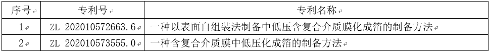 本成果采用表面自组装法制备中低压含复合介质膜化成箔,与浸泡法、溶胶凝胶法或者水解沉积法制备的中低压含复合介质膜化成箔相比,TiO2的沉积量更大、具有更高的比容。多级化成与表面自组装法结合使γ‑巯丙基三甲氧基硅烷的用量极少,降低生产成本。在相同的工艺条件下,表面自组装法制备的中低压含复合介质膜化成箔比中低压单介质膜化成箔具有更大的比容。