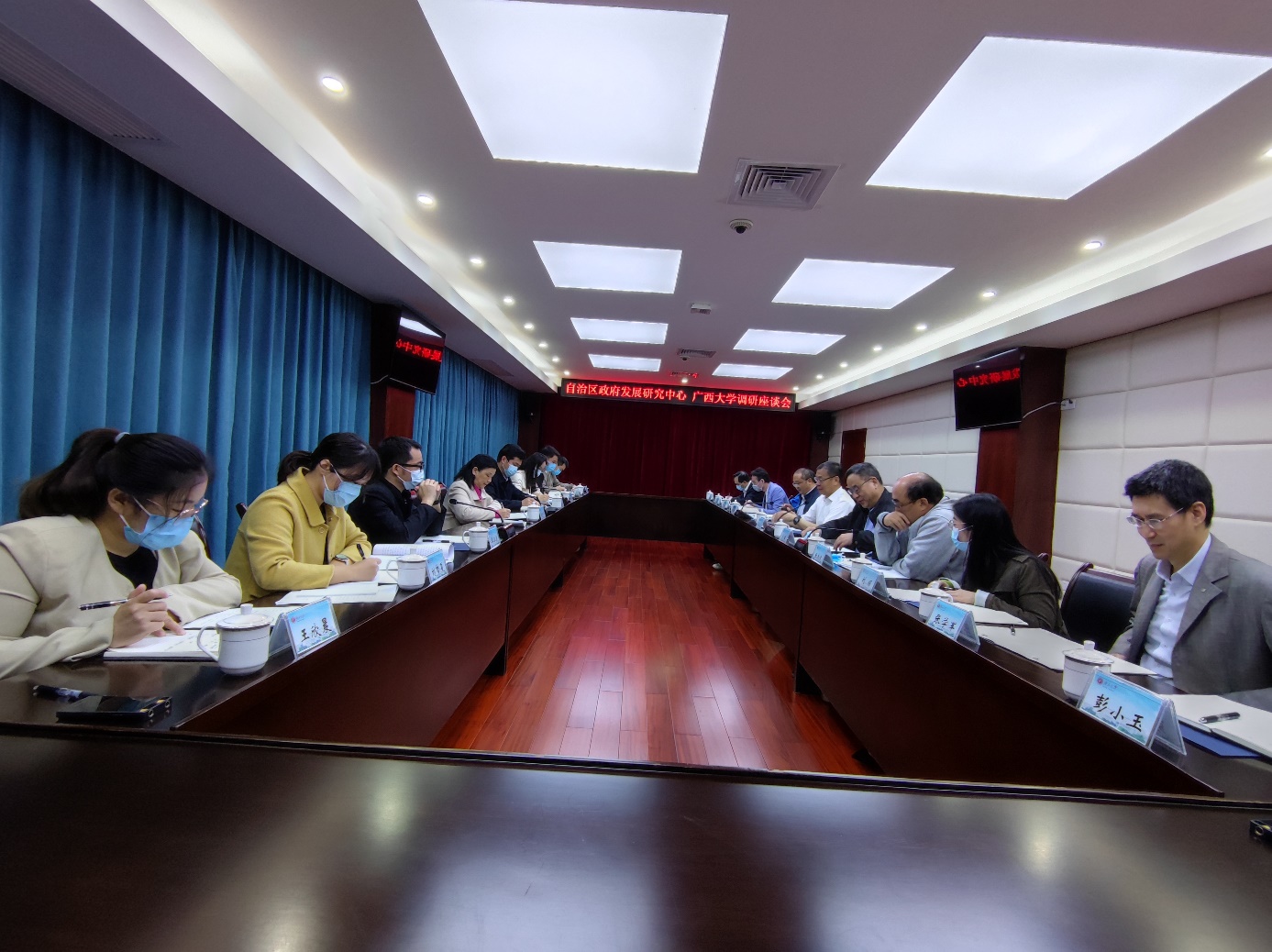 3月29日,自治区人民政府发展研究中心二级巡视员彭忠平带队来我校调研产学研协同创新工作,双方在我校校办楼108会议室举行座谈会。校党委常委、副校长韩林海出席会议,科技处副处长司红彬主持会议。自治区政府发展研究中心相关处室、广西农业科学院种质资源库和学校有关单位负责人参加会议。