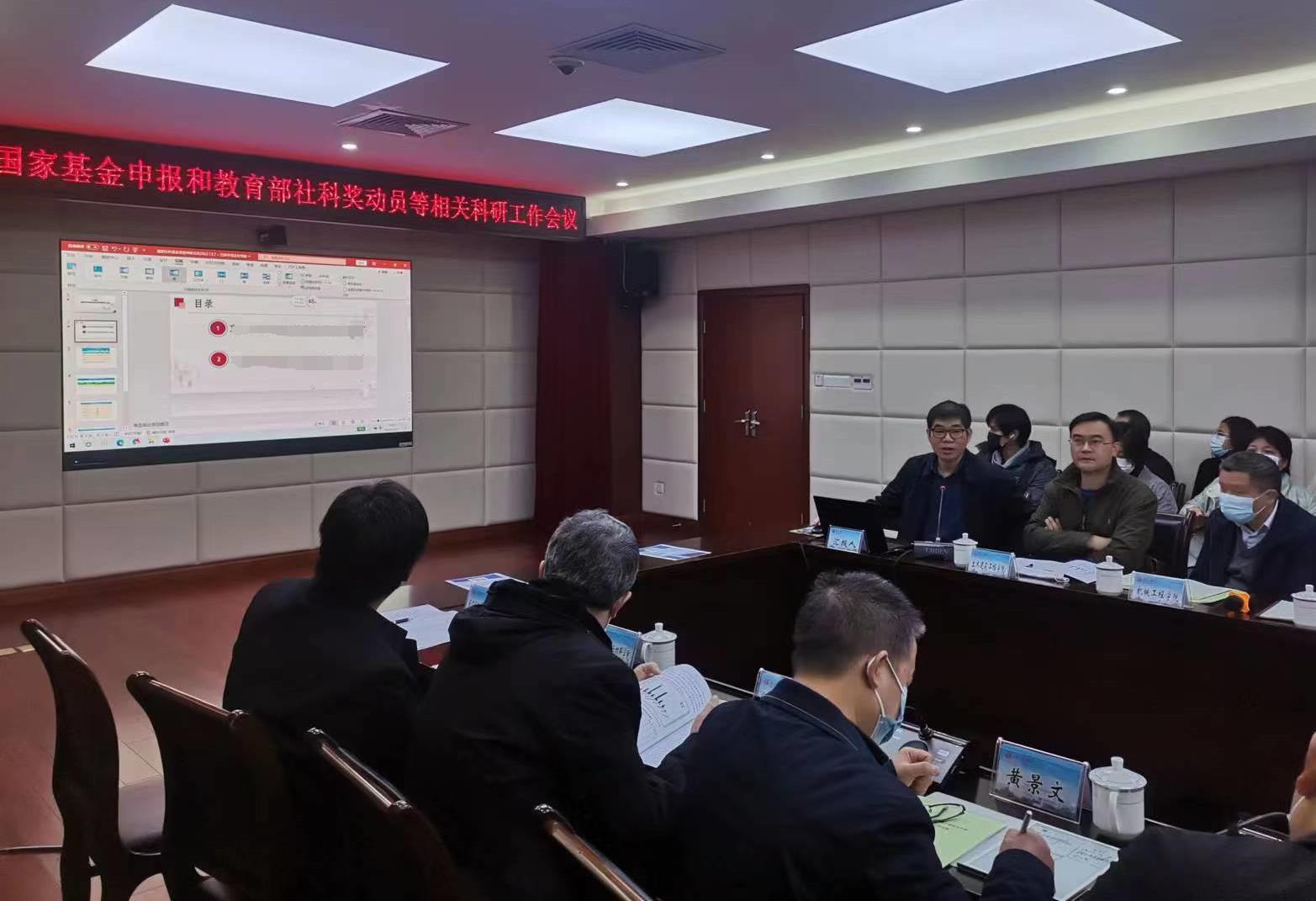 科研工作会议上,王祥高介绍本次会议旨在积极推进2023年国家基金项目申报工作以及教育部第九届高等学校科学研究优秀成果奖(人文社会科学)申报工作,开展有组织科研,进一步加强科研管理。