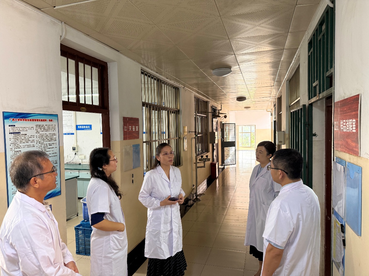 2025年9月19日上午,自治区教育厅组织的4人专家组莅临我校,对依托我校建设的4家广西高校重点实验室以及1家广西高校工程研究中心,开展建设验收与年度考核的现场核验工作。科研院副院长兼平台建设管理处处长赵祯霞,受验平台所在学院的负责人、平台负责人及学术骨干参与此次核验。